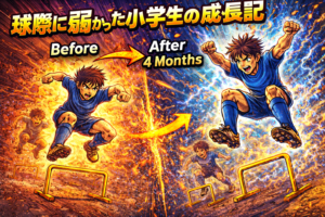 「あと一歩だったのに…」 試合を見ていてそんな瞬間を経験したことはありませんか? ・ルーズボールに一歩届かない・相手に体を入れられてしまう・切り返しで遅れる 一生懸命練習しているのになぜか結果が出ない。 実はその差を生む … 続きを読む 球際に弱かった我が子が変わった。約4ヶ月のアジリティトレーニングで起きた本当の成長とは?
